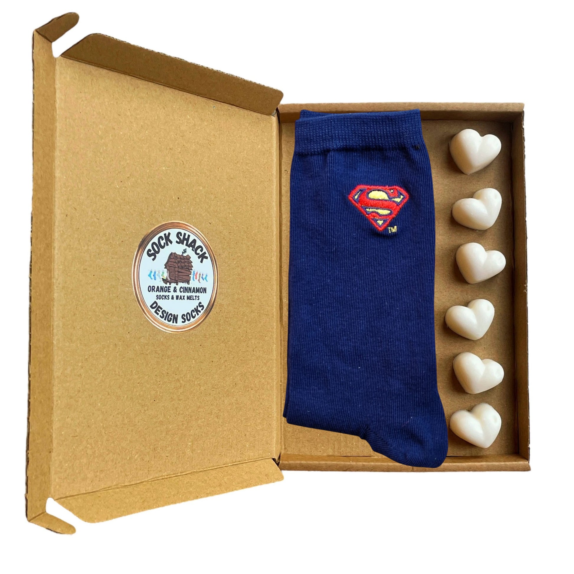 The Socks That Superman Would Wear Embroidered Shields Design Wax Melts Gift Set