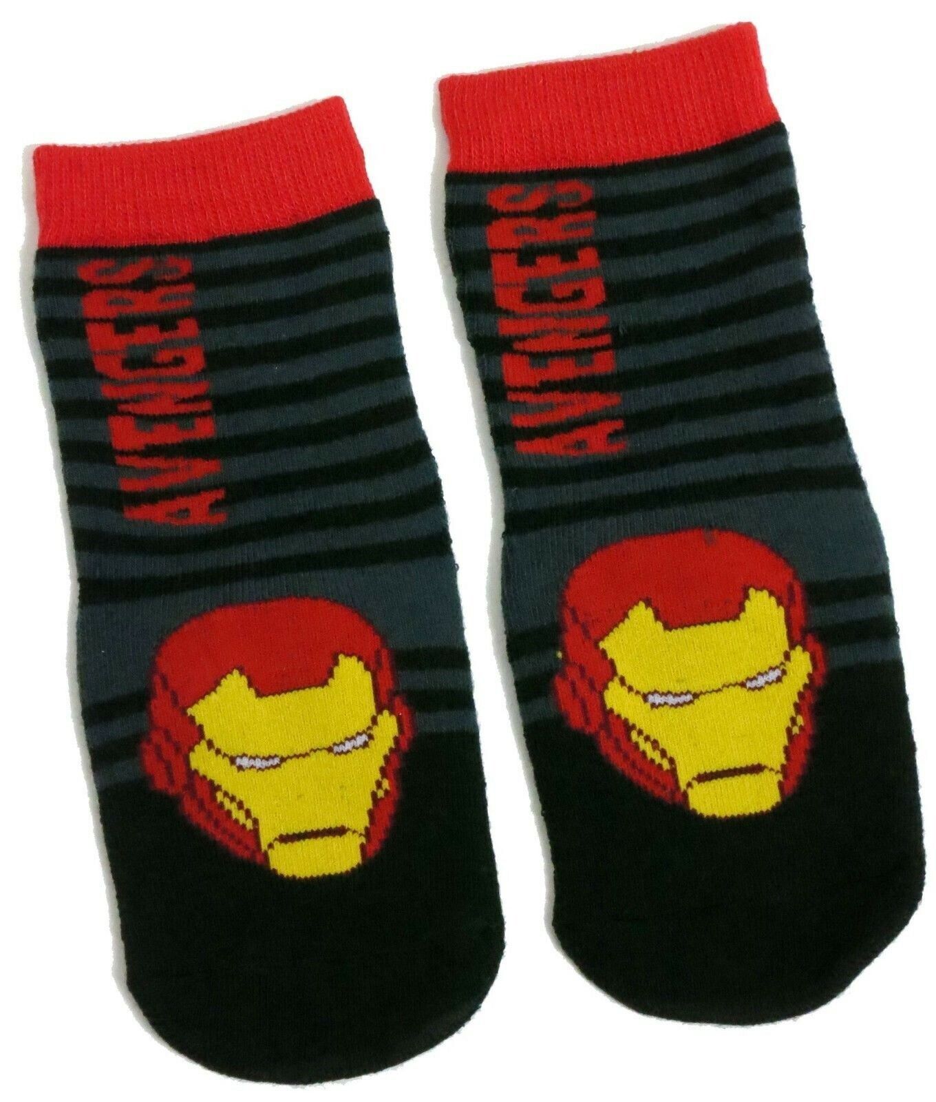 Boys Marvel Iron Man Face Black Striped Slipper Socks UK Size 6-8 / 1-3 Years