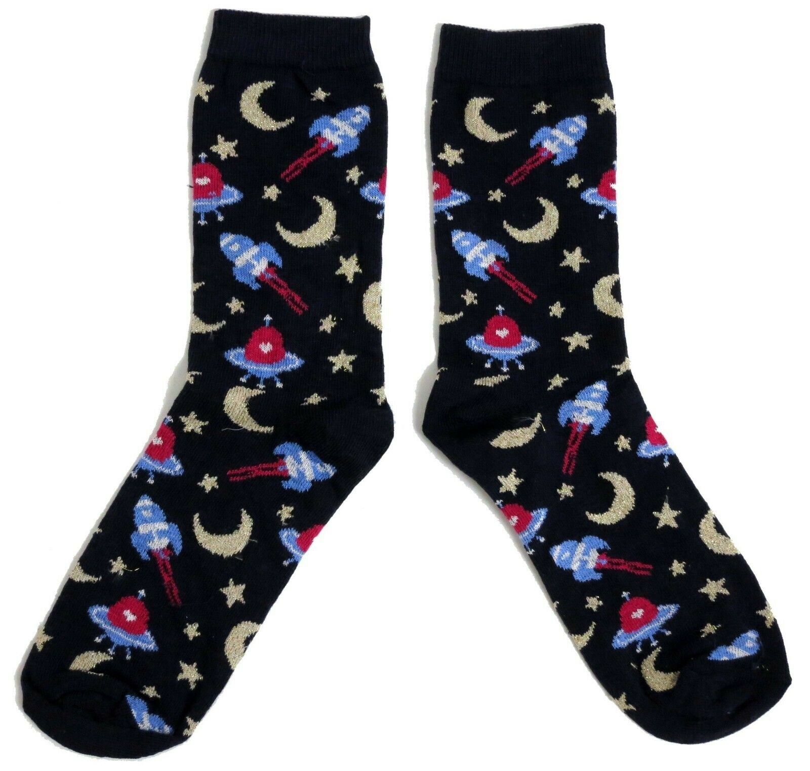 Midnight Blue Space Adventure U.F.O. Ladies Socks
