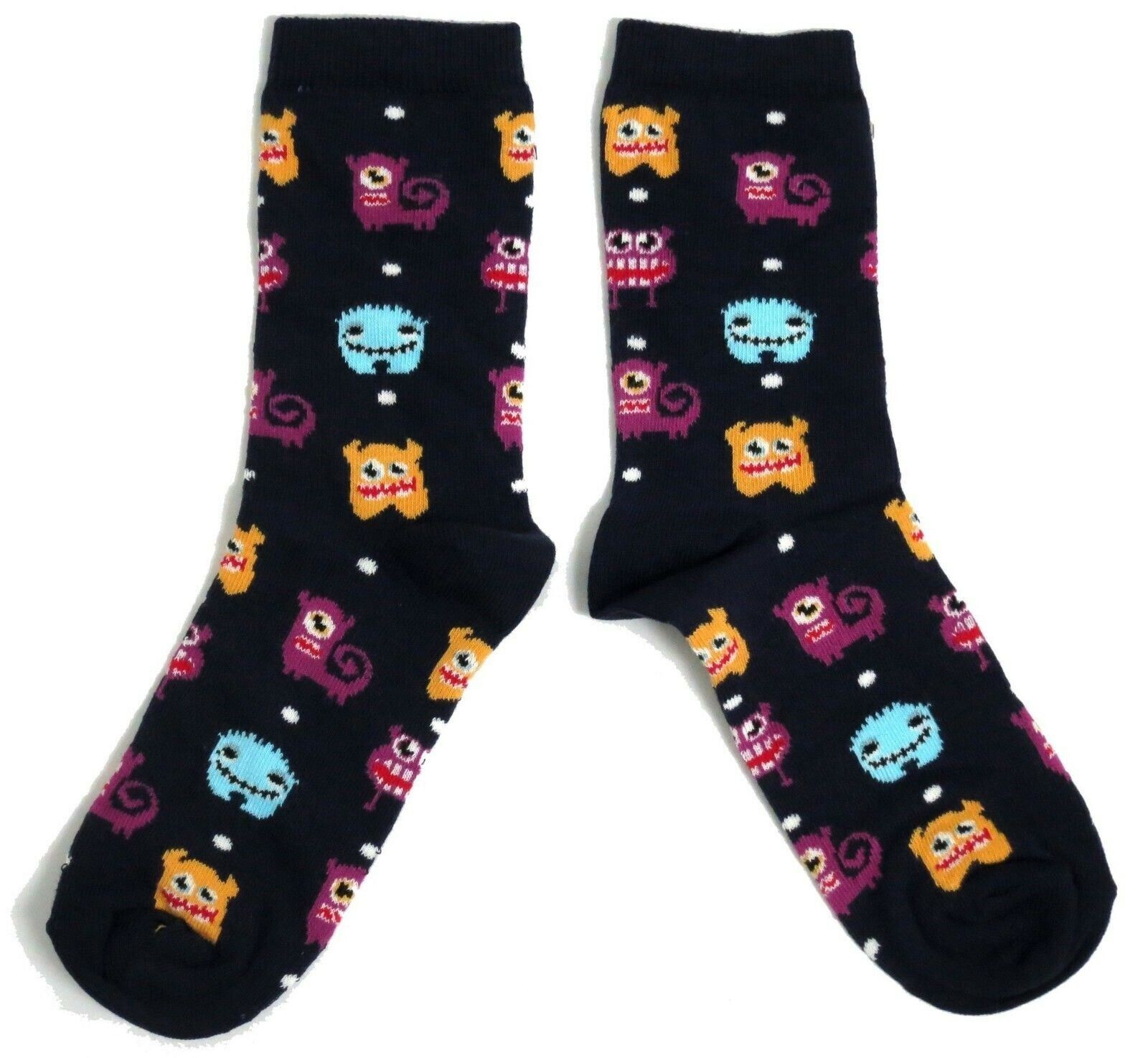 Step into spooky style with these ladies navy blue socks featuring adorable horror monsters that are utterly charming!
