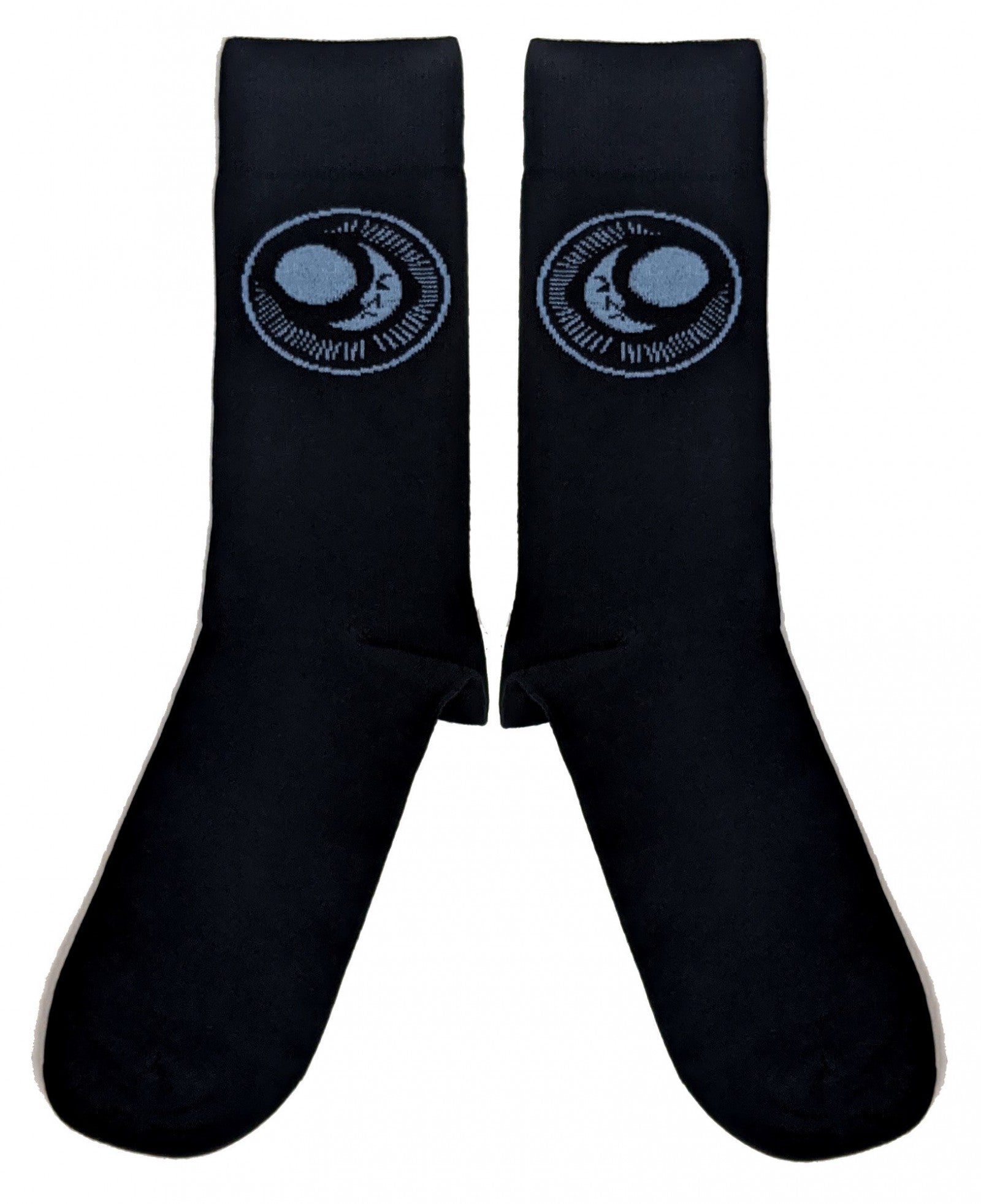 Crescent Moon With Face Naïve Art Black Mens Socks