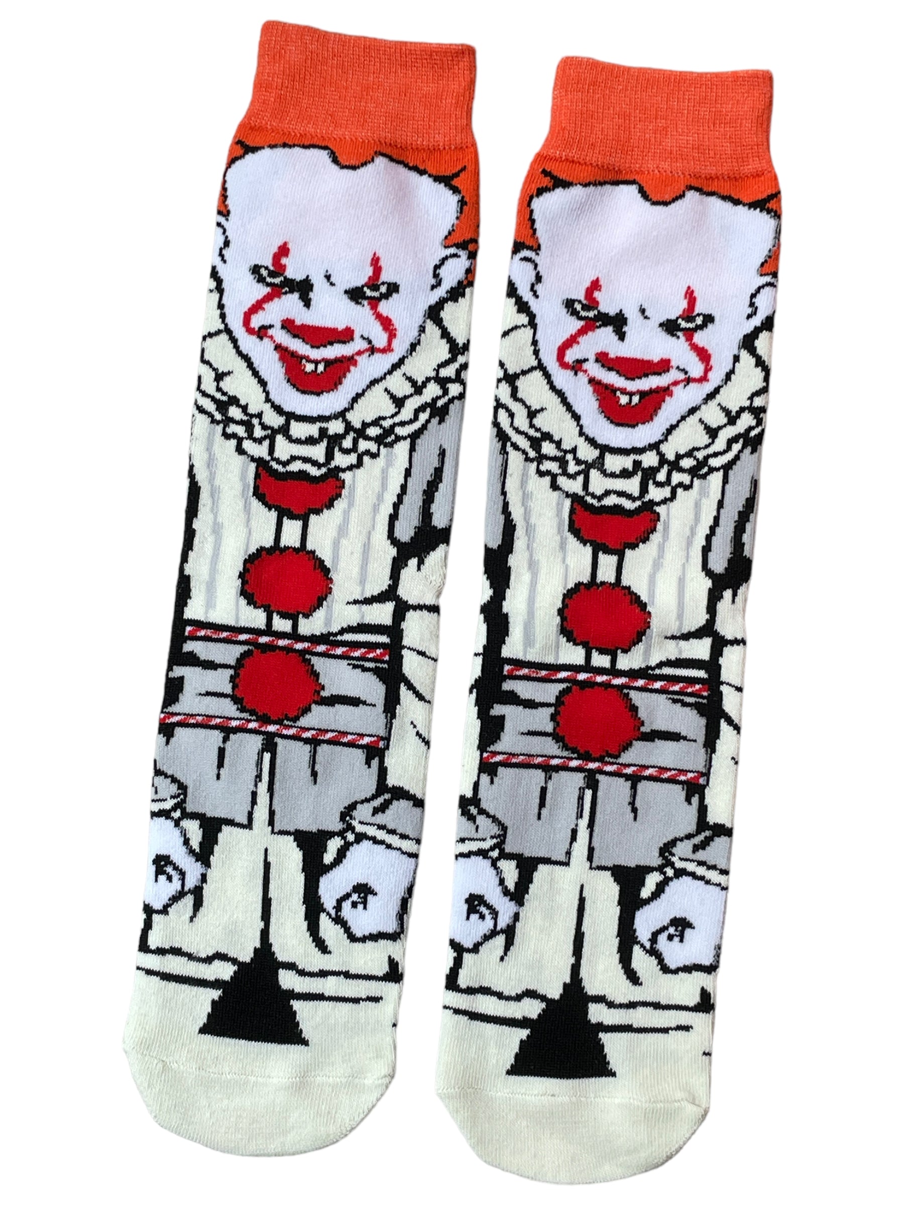 Step into spooky style with these IT Pennywise socks—perfect for wicked mischief and chilling adventures!