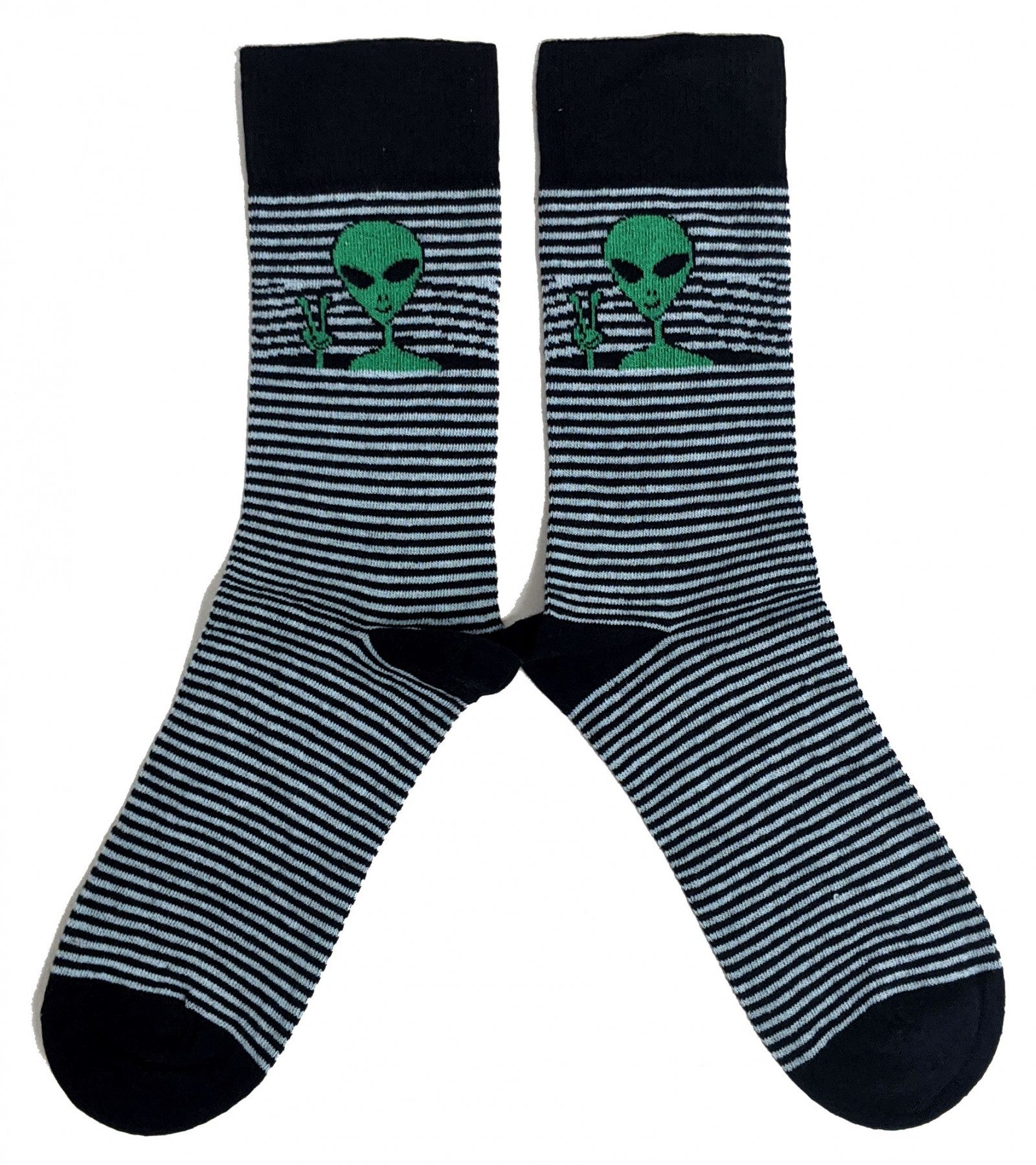 Bring a touch of cosmic charm to your feet with these quirky green alien socks, perfect for any fun-loving gent!