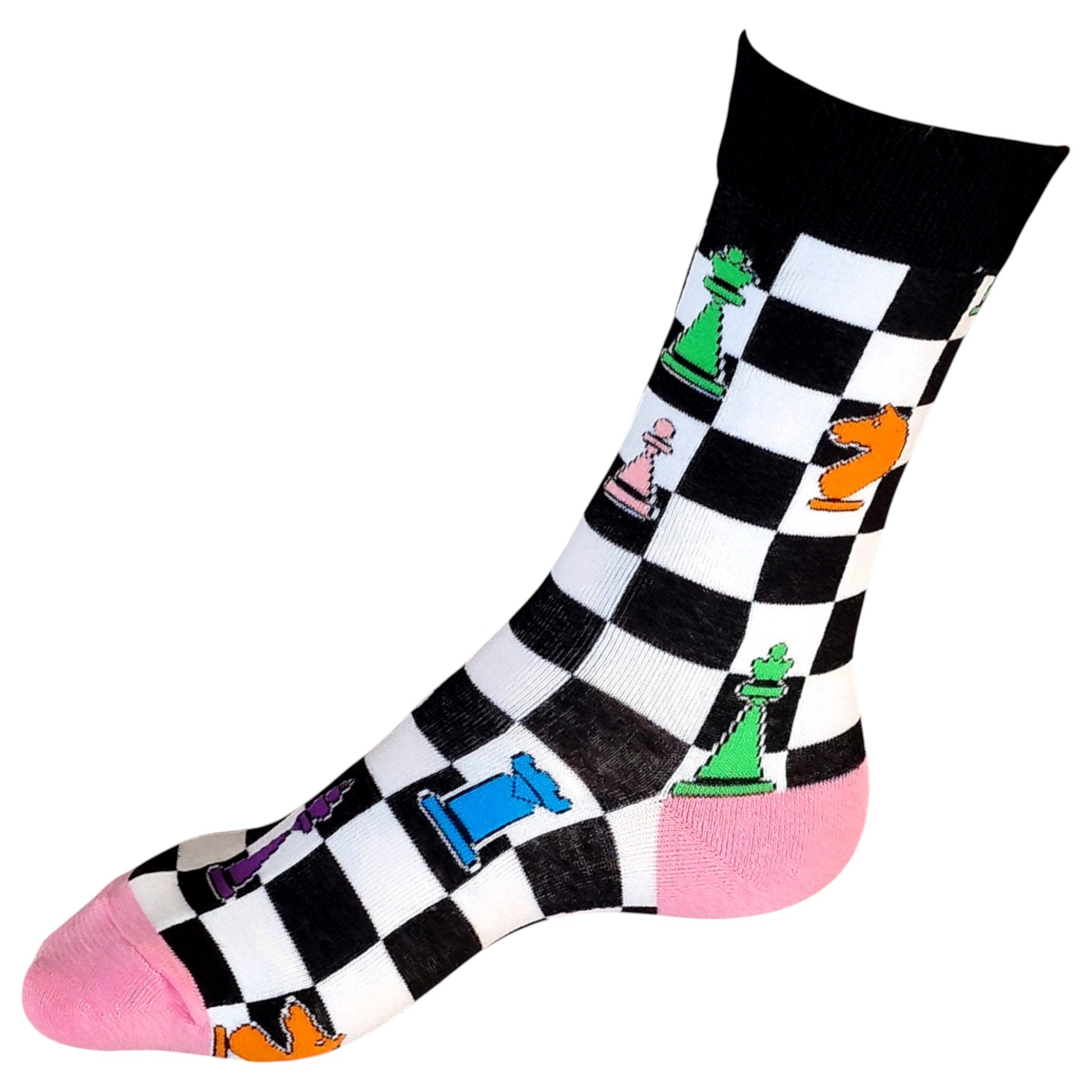 Rainbow Of Chess Pieces In Play Strategy & Style Chequered Ladies Socks